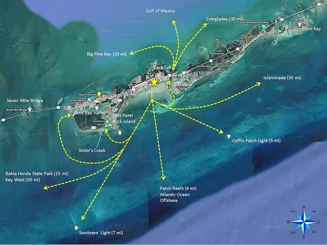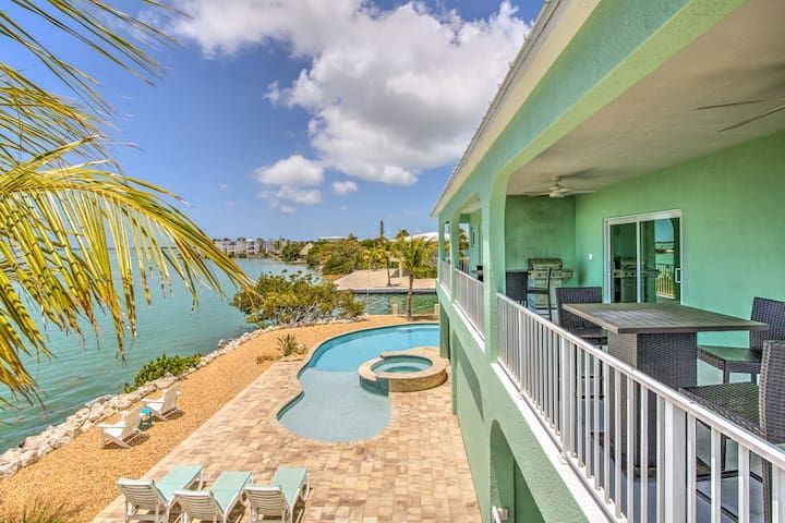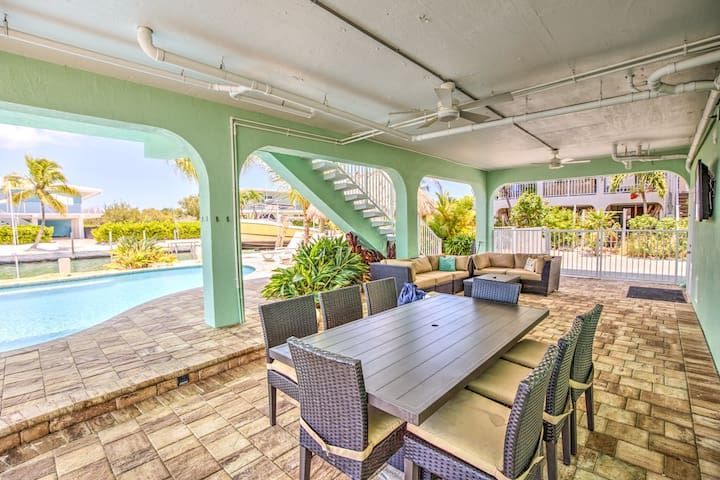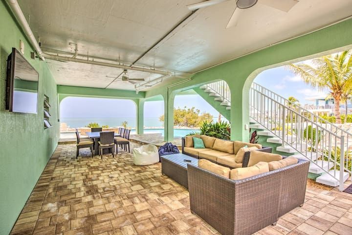 Located oceanfront midway between Sombrero Reef and Coffins Patch dive sites the home provides near-instant access to everything the Keys has to offer. Relax at the pool, fish from the dock, or just watch in amazement as your own personal aquarium greets you each day - manatees, dolphins, rays, and sharks, lobsters, pelicans, herons, ospreys, eagles, frigates, and fish, fish, fish are all regular guests at Hook Down Hideaway. You can explore the flats, hunt tarpon in the mangroves, boat or fish the glass-smooth gulf side waters, or enjoy world class diving and offshore fishing via the USCG maintained channel less than 300yds from your dock.