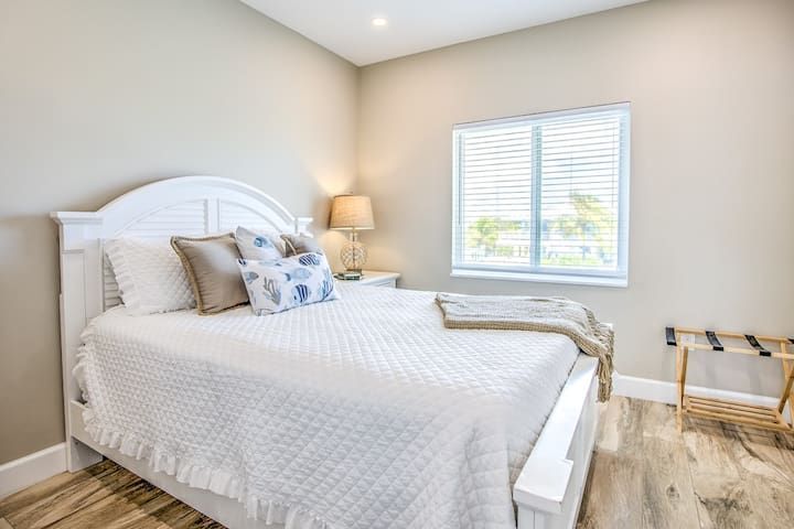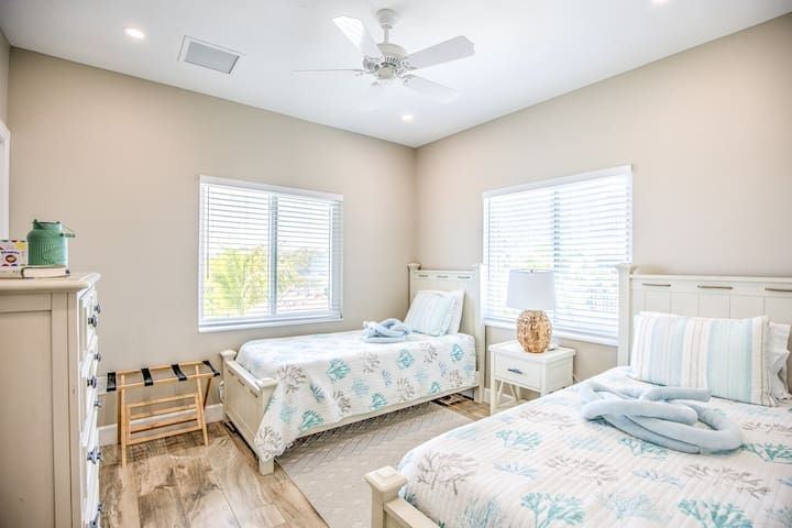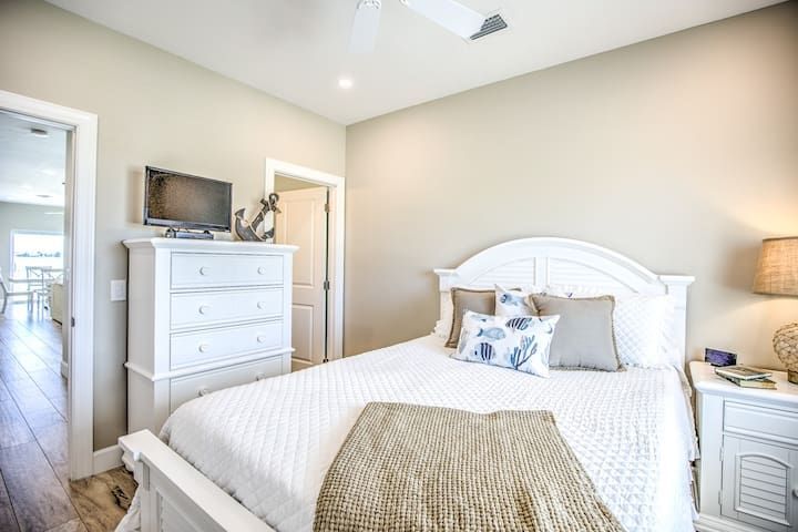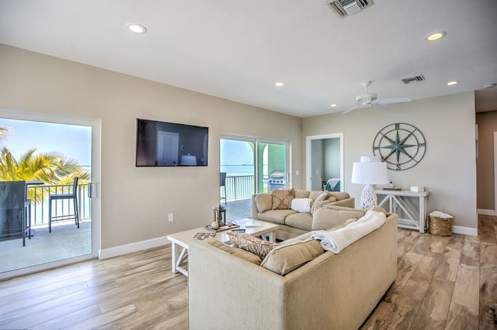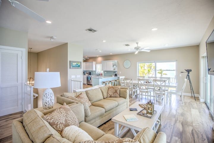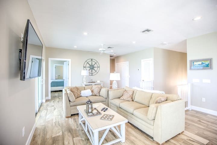 TVs are provided throughout the home as well as outside, and all bedrooms offer charging stations at the nightstands. We provide secure high-speed mesh Wi-Fi internet and basic cable throughout the property, and guests can stream their favorite listings on the family room smart TV. For those wishing to work remotely, this home offers the perfect solution for work / play in the Florida Keys!