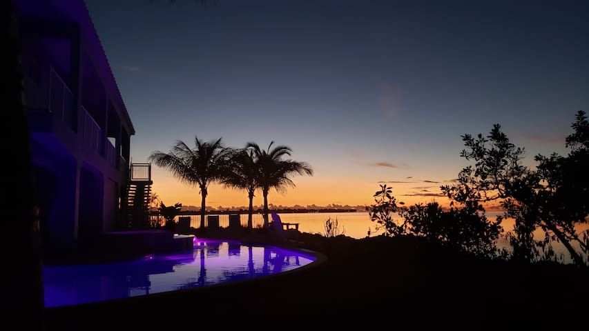 Returning from a day of boating, snorkeling, diving, or fishing you'll drift into the pool or relax with a cold drink in a private tropical oasis under the tiki. Lay back and enjoy the view across the pool and beyond, as you soak in a hundred shades of blue and green across miles of open water - it's a relaxing and mesmerizing way to finish each day!